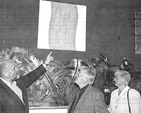 Künstler und Bildhauer Uwe Appold erläutert Pfarrer Lenhoff und Besucherin Hildegard Steindorf seine Werke. Foto: Kloiber |